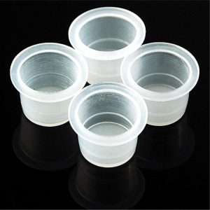 Tappi contenitori per inchiostro tatuaggio, disponibili in diverse dimensioni e tipologie, con e senza base, conici o cilindrici. Permettono di organizzare facilmente i colori e le quantità di inchiostro, sono disponibili in diverse forme e colorazioni, di tipo monouso sterili e non.