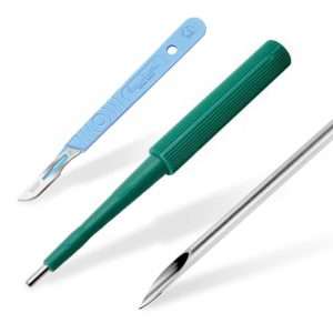 Aghi e taglienti specifici per ogni applicazione di piercing, assicurano un ingresso pulito e preciso così da minimizzare il trauma ai tessuti e facilitare una guarigione rapida e pulita.
