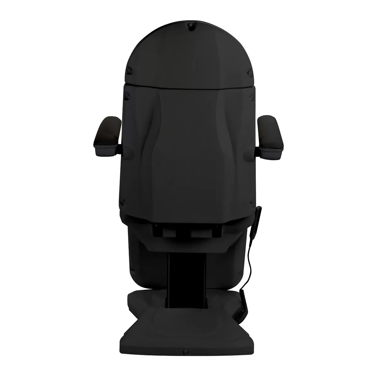 - Il poggiatesta, estensibile di 20 cm, consente di adattare la poltrona all’altezza dell’utente, garantendo un supporto stabile per la testa durante i trattamenti. I braccioli mobili, che ruotano di 180°, facilitano la seduta e offrono un comodo accesso per chi esegue il trattamento. Possono anche essere facilmente rimossi se necessario. Queste caratteristiche migliorano il comfort e supportano un flusso di lavoro ergonomico.