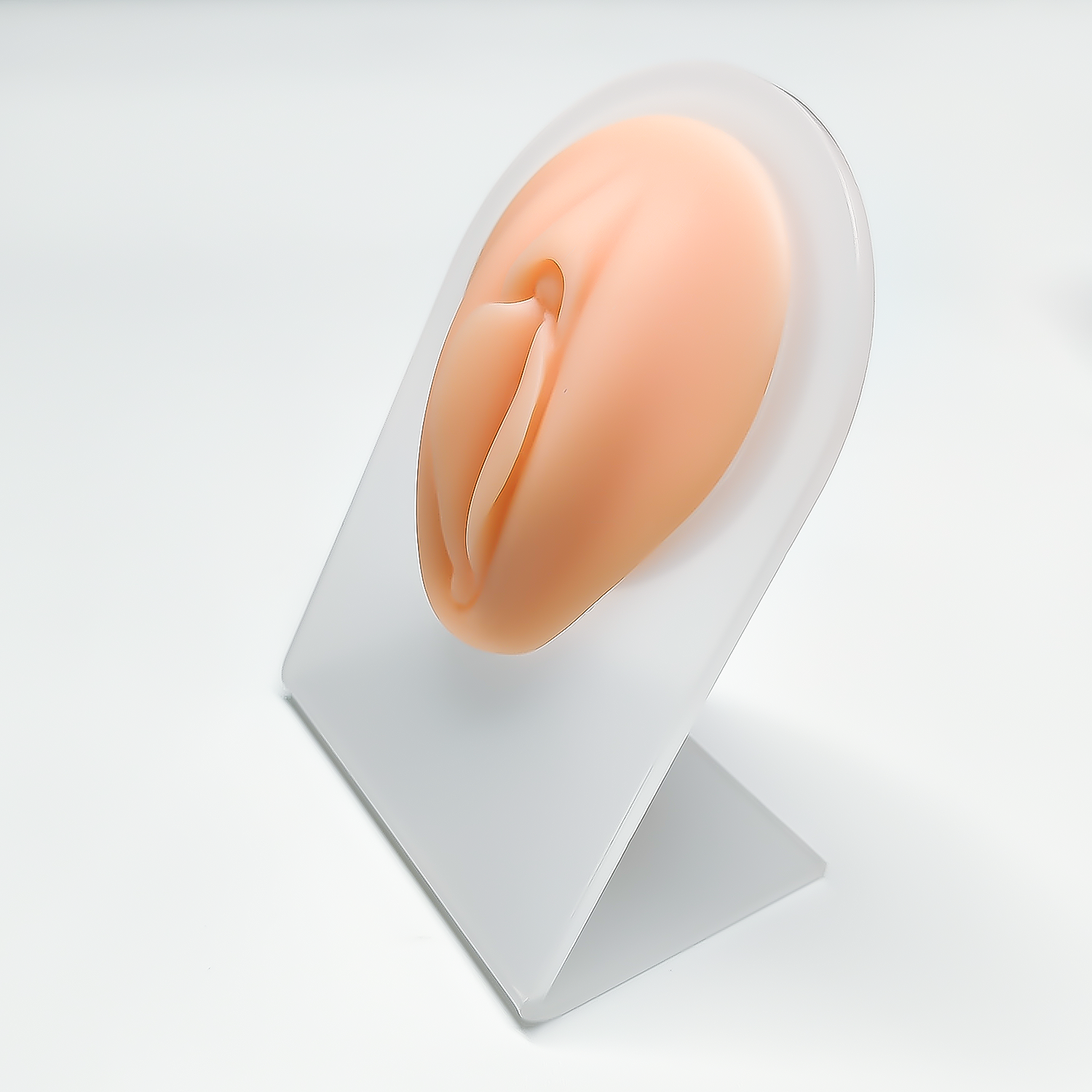 Vagina in silicone con supporto in plexiglass trasparente per pratica piercing