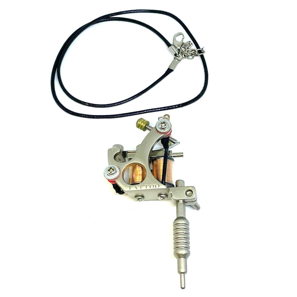 Collana con mini macchina per tatuaggi argentata realmente funzionante.